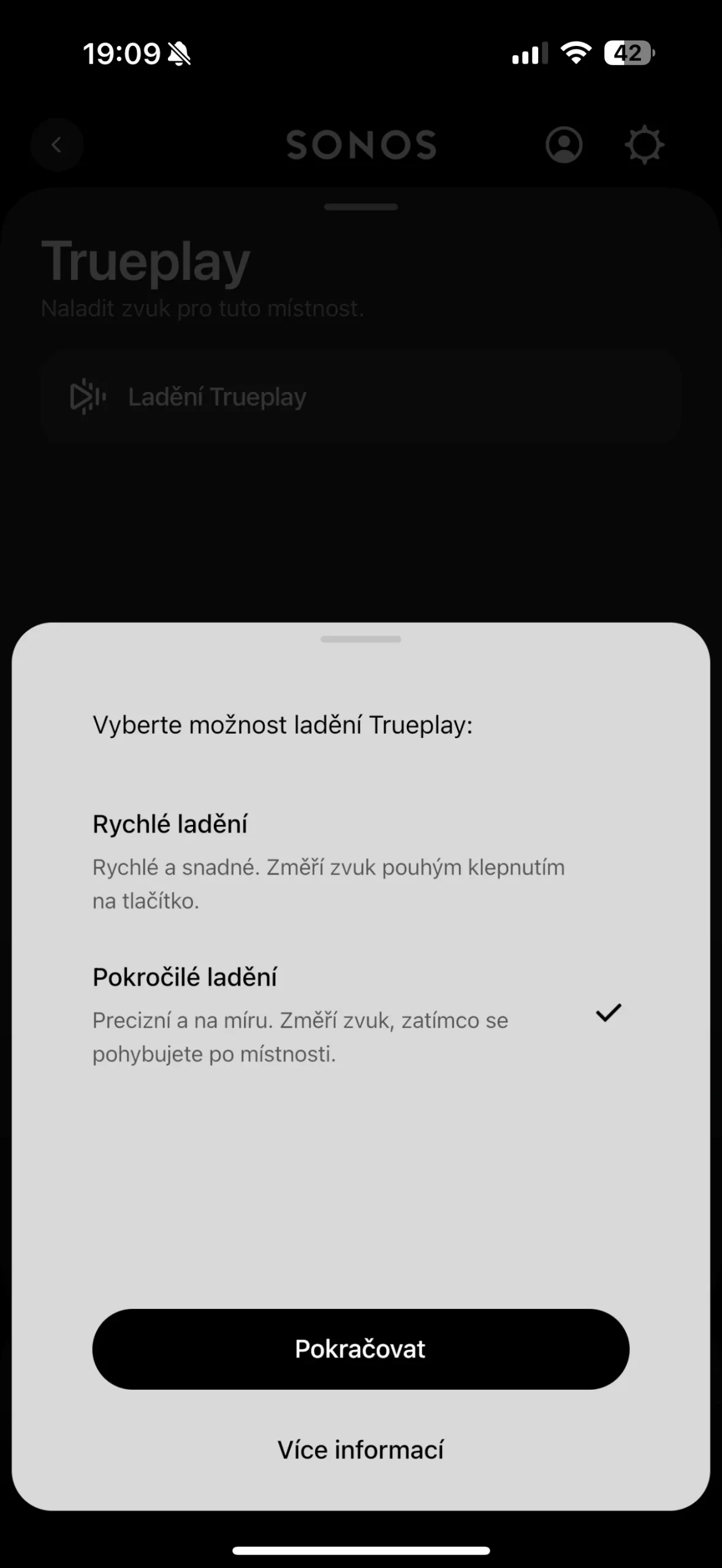 Ladění TruePlay je dostupné skrze mobilní aplikaci Sonos. Na výběr máte ze dvou režimů – Rychlé ladění a Pokročilé ladění využívající mikrofony v iPhonu. Pokud máte smartphone s Androidem, budete si muset vystačit „pouze“ s režimem rychlého ladění. Na druhou stranu rozdíl mezi oběma režimy není nikterak dramatický, respektive na vlastní uši jsem si nevšiml výraznějšího rozdílu.