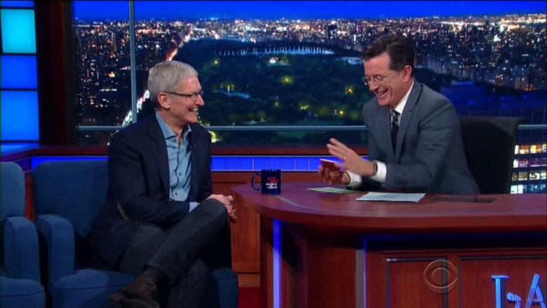 Na světě není mnoho managerů, kteří by se dali považovat za celebrity. CEO Applu Tim Cook mezi ně však bezpochyby patří. Také proto se před pád dny stal prvním hostem v talkshow Stephena Colberta, což je americká obdoba našeho pořadu s Janem Krausem. Tim Cook se během necelých deseti minut rozpovídal o spoustě důležitých i důvěrných věcí. Moderátor Colbert nejprve na Cooka vytáhl zbrusu nový iPhone 6s v růžové barvě, aby si moderátor na vlastní kůži vyzkoušel 3D Touch. Tim Cook neopomněl připomenout, jak jsou fuknce nového iPhonu skvělé. Jak bývá v tomto formátu pořadu zvykem, moderátor si neodpustil malé rýpnutí. Před Timem Cookaém se totiž zeptal “Změnili jste zase nabíjecí konektor? Jestli ano, tak vás teď hned bodnu vidličkou do krku.” Host odpověděl, že můžeme být v klidu, nabíjecí konektory totiž Apple mění asi jednou za 10 let.