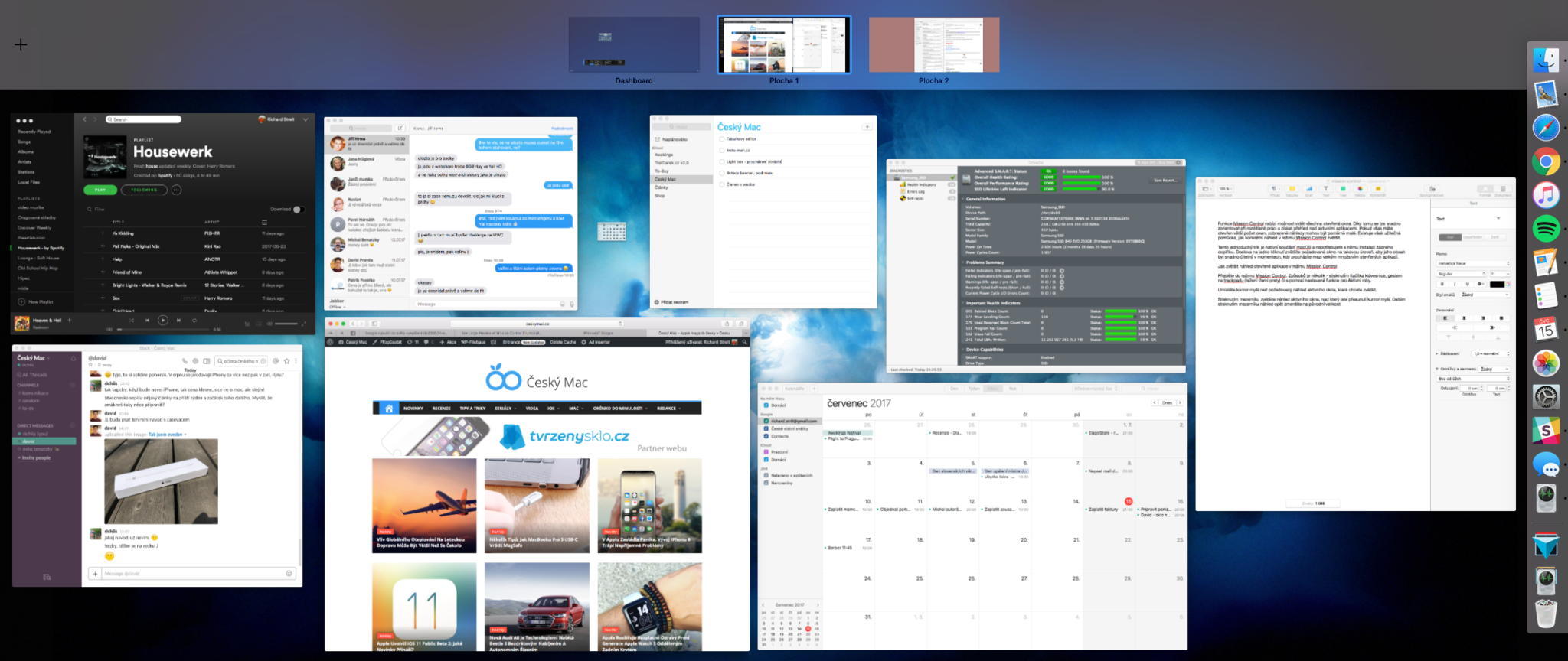 - Přejděte do režimu Mission Control. Způsobů je několik – stisknutím tlačítka klávesnice, gestem na trackpadu (tažení třemi prsty) či s pomocí nastavené funkce pro Aktivní rohy.