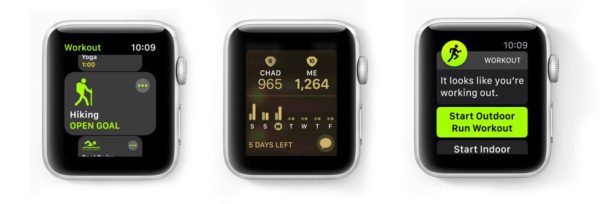 WatchOS 5 přichází s novou funkcí automatického tréninku. Od nynějška už žádné zapomínání na zapnutí aplikace cvičení. Apple Watch vás upozorní na právě probíhající aktivitu a v případě, že i toto oznámení zmeškáte a v půli běhu si například vzpomenete, že byste si vlastně mohli změřit vzdálenost běhu, tak žádný problém. WatchOS 5 zkrátka jen přičte předchozí minuty k danému cvičení a jedeme dál. Apple rovněž přidal i nové sporty – jógu a turistiku.
