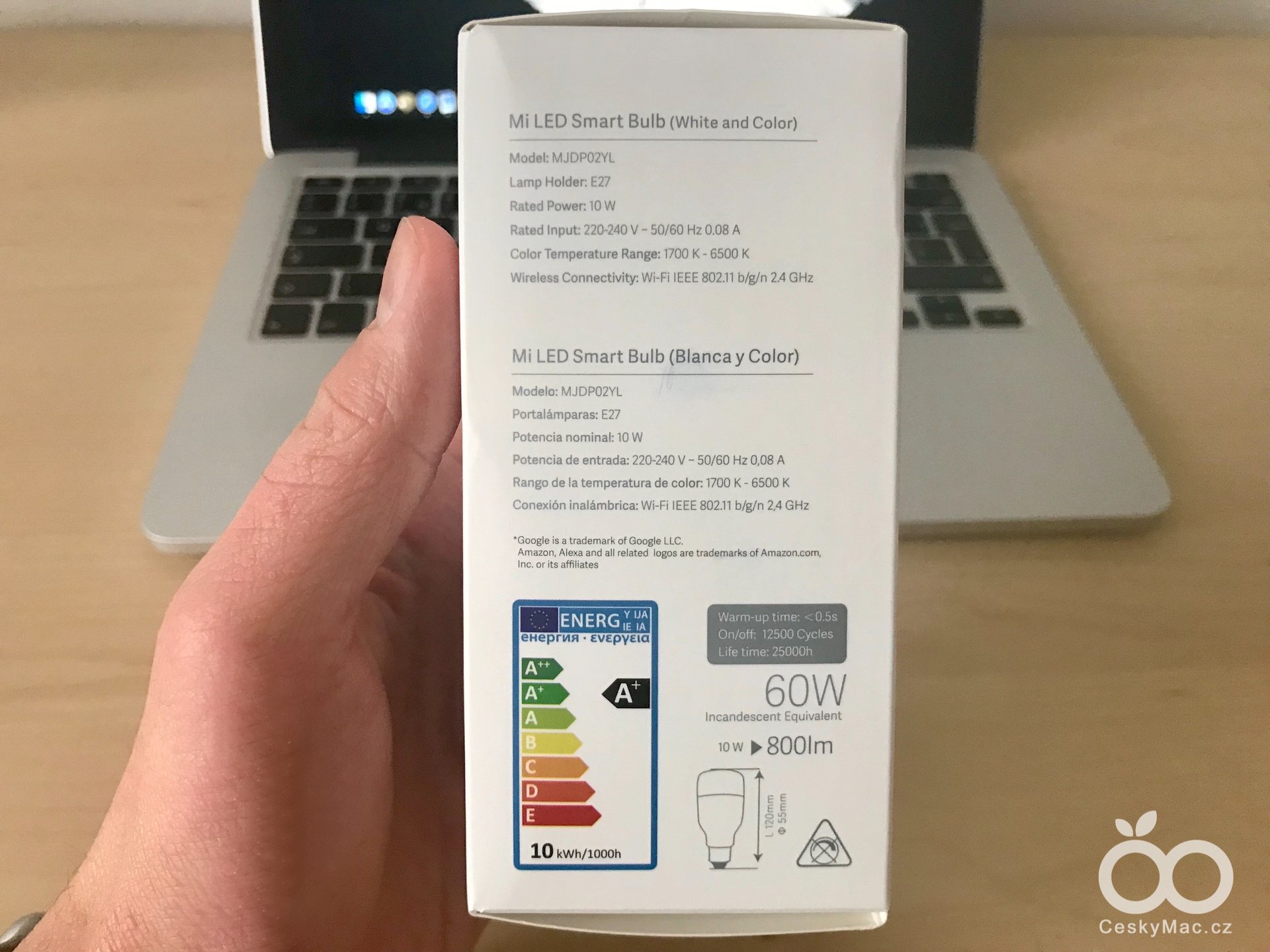 Pokud vám tato čísla nic neříkají, tak věřte, že pokud zvolíte bílou barvu a jas na 100 %, tak si budete připadat, jako byste měli v pokoji druhé slunce. Mi Bulb svítí jak o život, v porovnání s klasickou 60W žárovkou je to opravdu znát. Chytrá žárovka je úsporná, takže se nemusíte bát, že by vám po měsíci dorazil tučný účet za spotřebu elektřiny. Mi Bulb je řazena do kategorie A+.