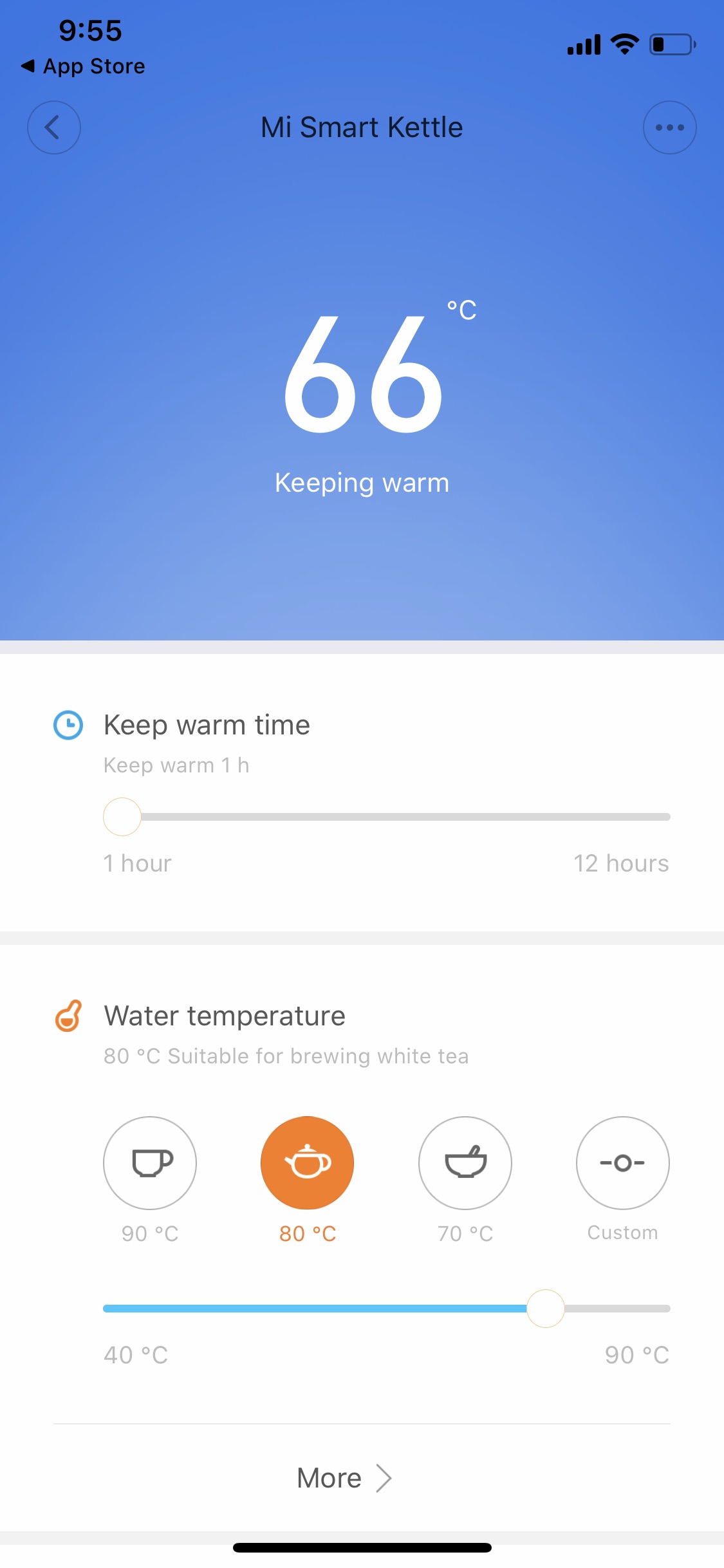 Uvaření vody je tak jednoduchý úkol, až se může zdát, že zapojovat zde chytré technologie je zcela zbytečné. Vždy to ale nemusí být pravda. U chytrých produktů považujeme za samozřejmost možnost připojení zařízení ke smartphonu. Xiaomi Mi Smart Kettle ani v tomto ohledu není výjimkou. Na rozdíl od některých ostatních zařízení ji však lze spárovat pouze prostřednictvím Bluetooth. Například rýžovar Xiaomi Mi Rice Cooker se připojuje přes Wi-Fi díky čemuž jej můžete ovládat odkudkoliv. Konvici je možné z telefonu řídit jen v její blízkosti.