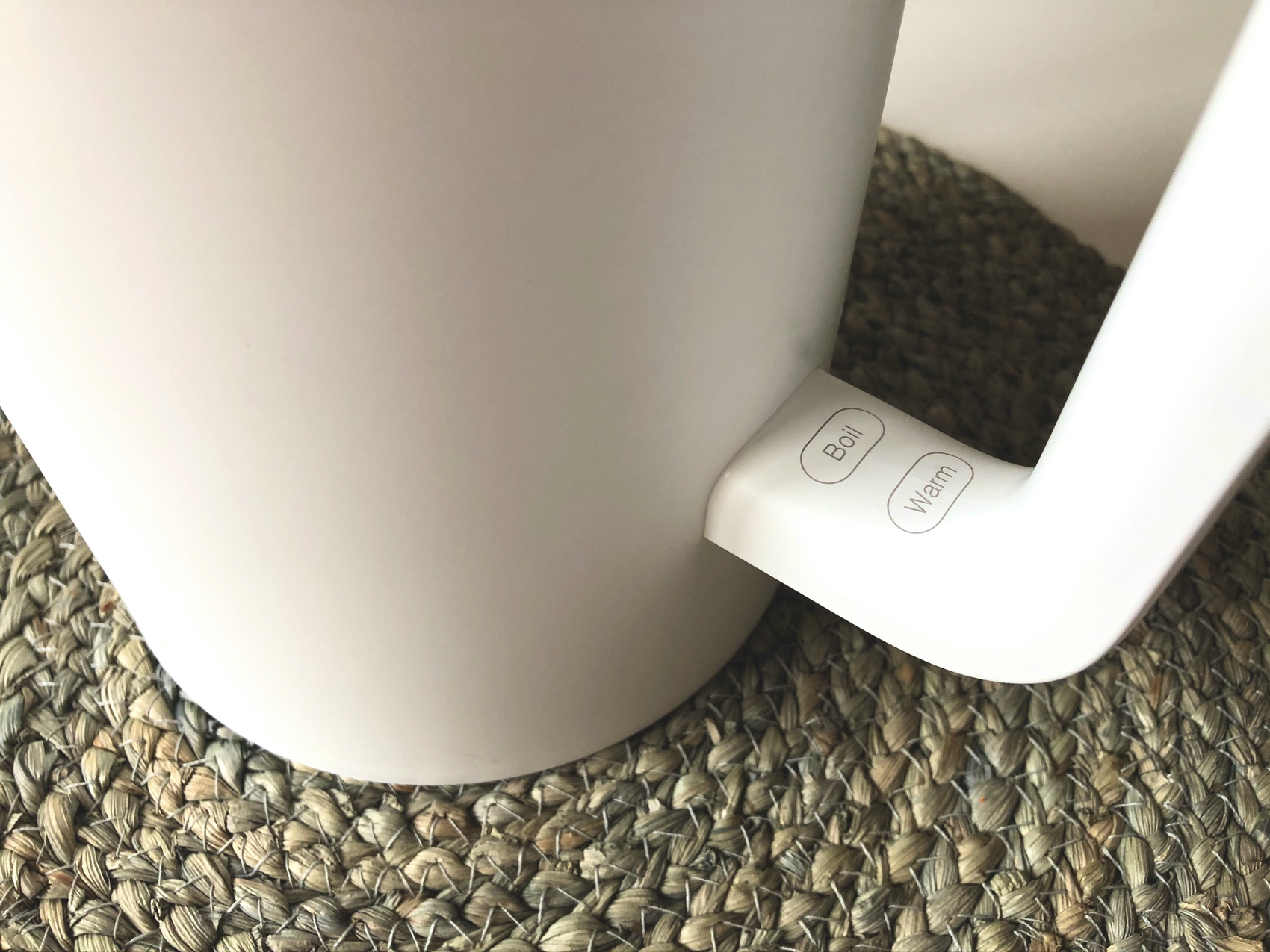 Ta má na svém úchytu dvě tlačítka. Boil a Warm. Pokud zmáčknete Boil, voda se vždy uvaří až do varu. Pří aktivaci druhého tlačítka se voda ohřeje na vámi stanovenou teplotu. Tu bude udržovat po dobu jedné až dvanácti hodin. Opět v závislosti na vašem přání. Jediné vysvětlení toho, proč proces vaření vody není možné přímo aktivovat z mobilu, ale musíte zmáčknout tlačítko přímo na konvici, je pro mě bezpečnost.